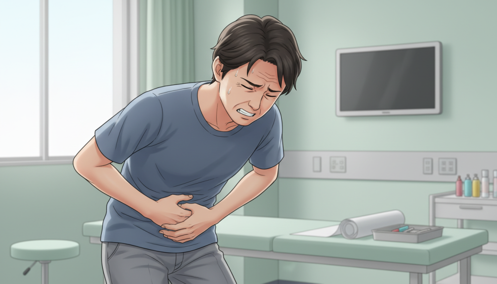 冷や汗が出るほどの強い痛み、立っていられないような激痛は、緊急性が高いサインです。急性胃炎だけでなく、虫垂炎や膵炎など早急な対応が必要な病気の可能性もあります。