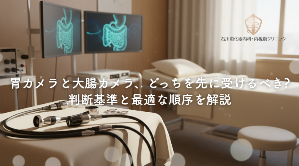 胃カメラと大腸カメラ、どちらを先に受けるべきかは、症状・年齢・健診結果によって判断します。